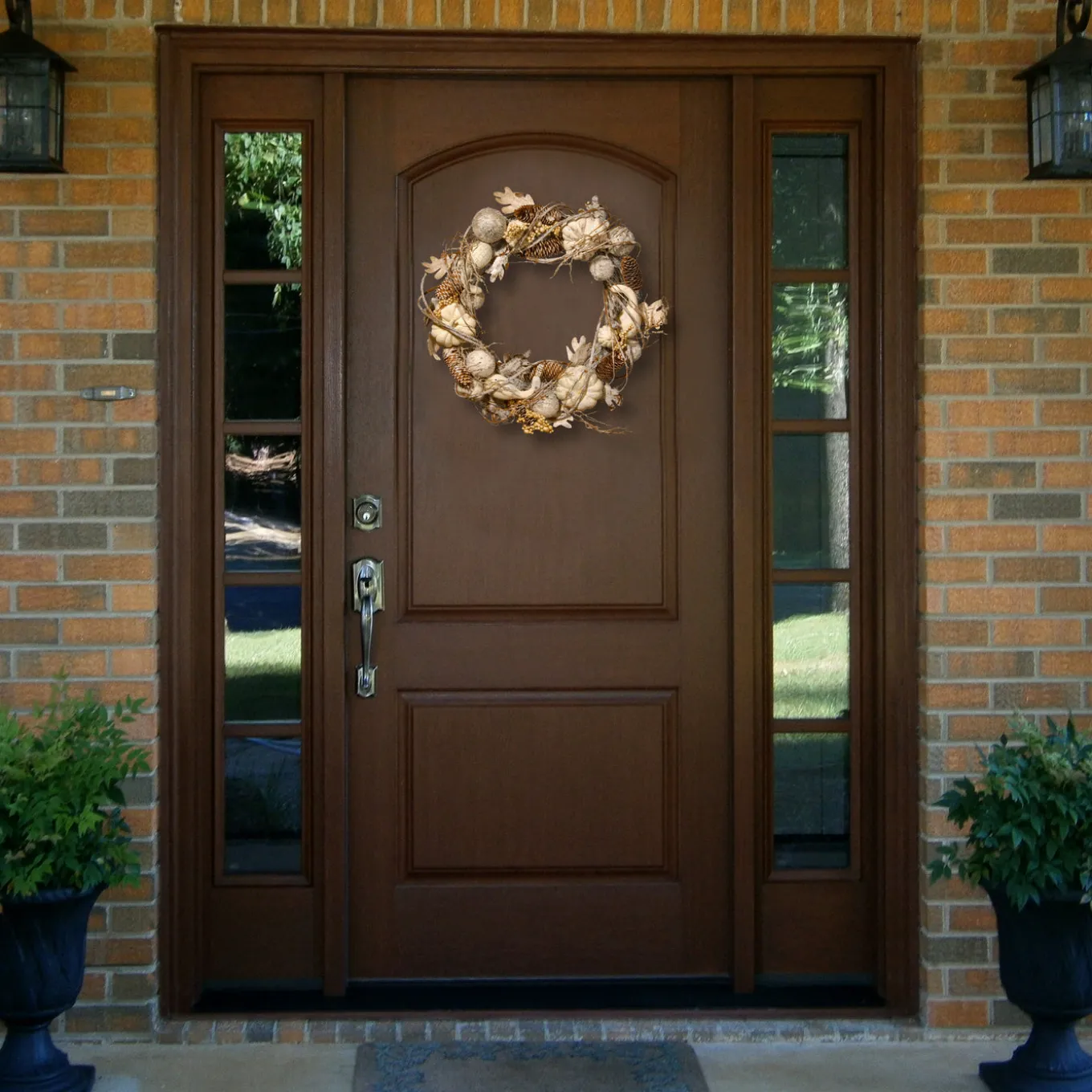 - Durable, fire-resistant and suitable as an indoor or covered outdoor autumn decoration, this wreath is designed to endure the fall season year after year.