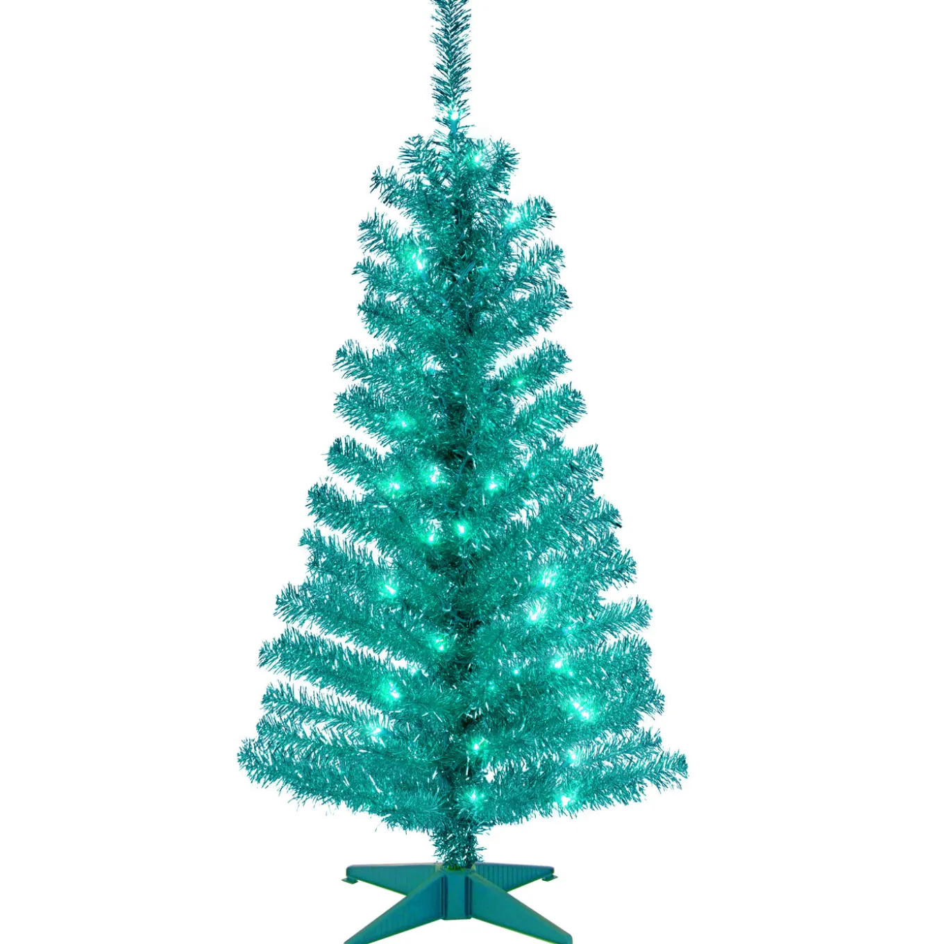 4 ft. Pre-Lit Tinsel Collection Turquoise Tree with Clear Lights