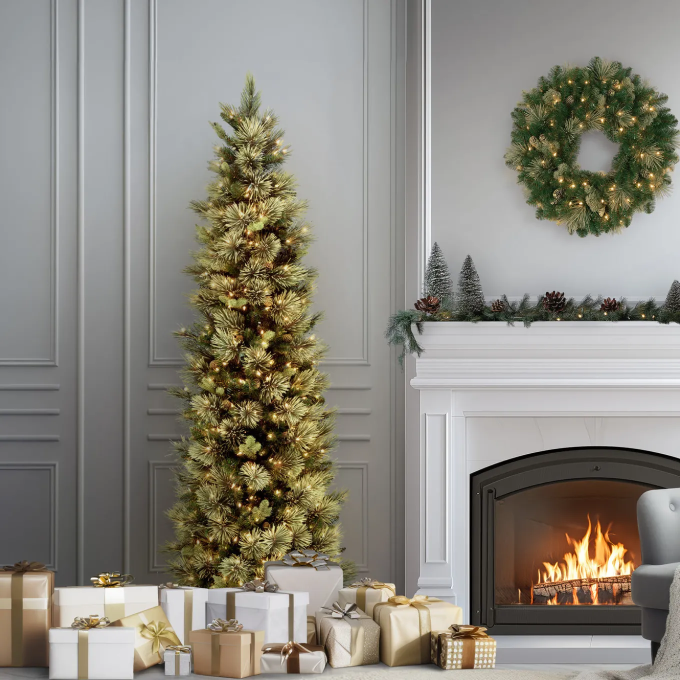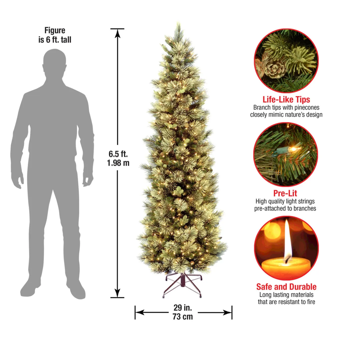 6.5 ft. Pre-Lit Carolina Pine Slim Tree with Clear Lights