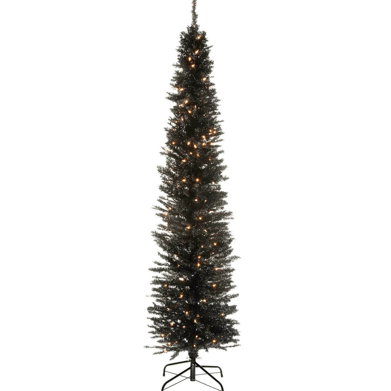 6 ft. Pre-Lit Tinsel Collection Black Tree with Clear Lights