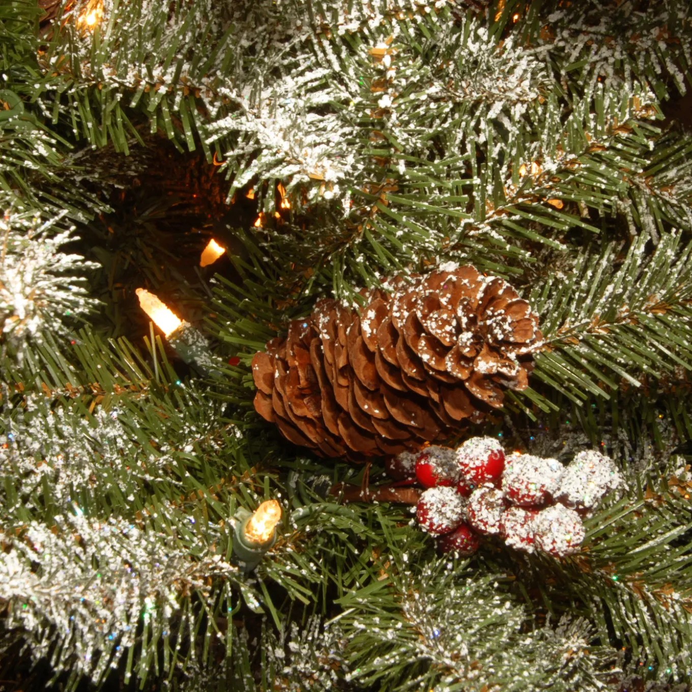 The Dunhill Fir is a slim profile tree ideal for display in corners, small rooms, and areas with limited space. It comes pre-lit with 600 clear lights for an elegant holiday glow, and is adorned with pine cones, red berries, and a touch of snow for a festive look. Hinged branch construction make setup and takedown a breeze. Metal folding stand include, for indoor use only.