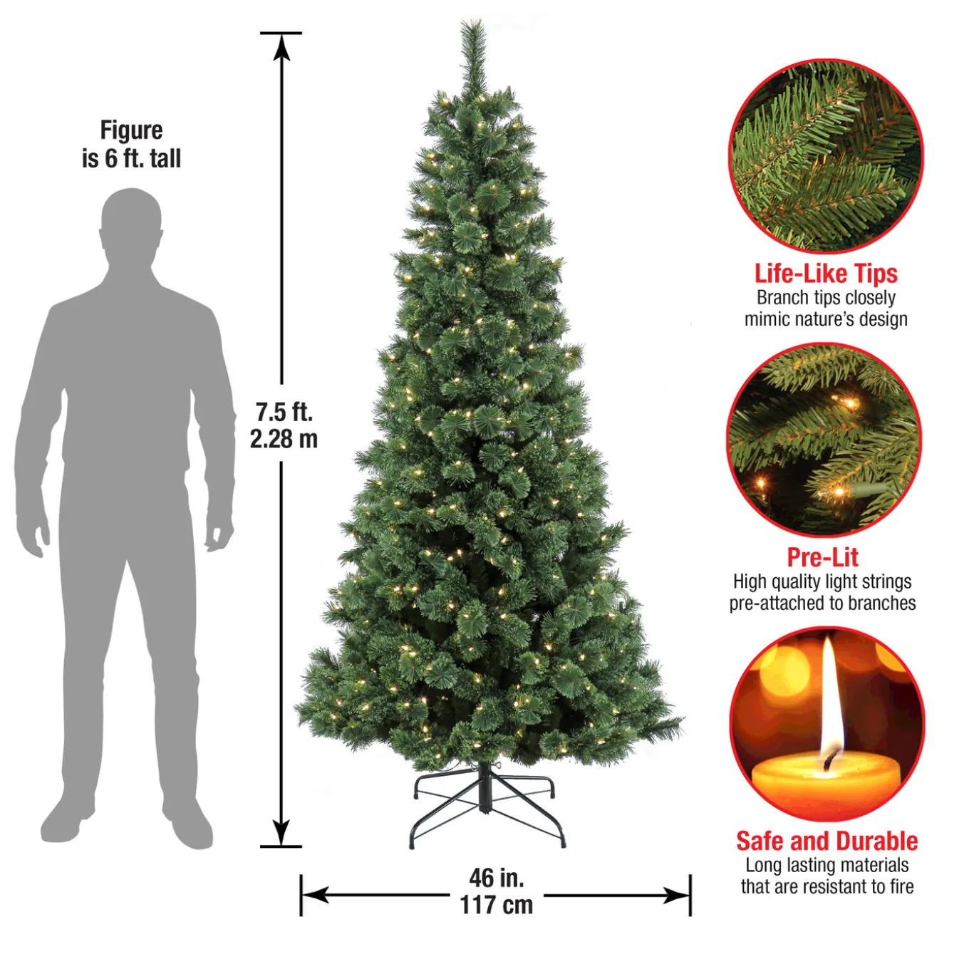 7.5 ft. Pre-Lit Pilchuck Pine Tree with LED Lights