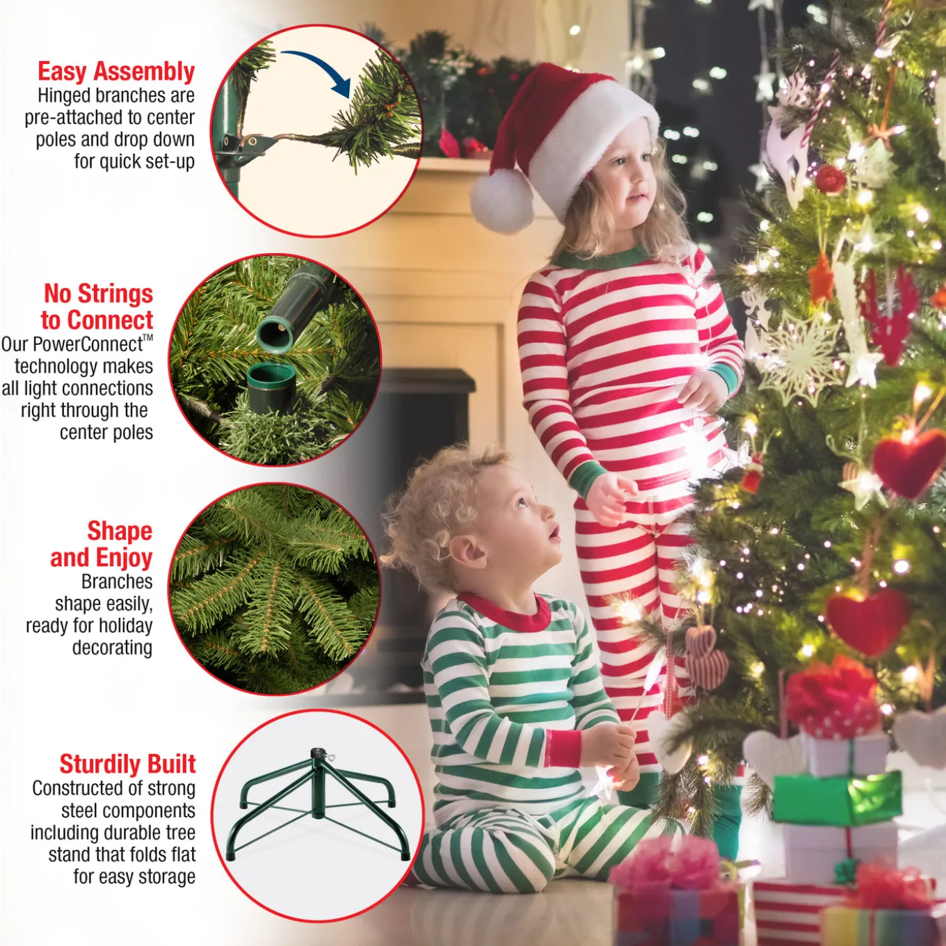 Hundreds of crush-resistant polyethylene tips form full bodied branches, creating a tree with remarkable realism.