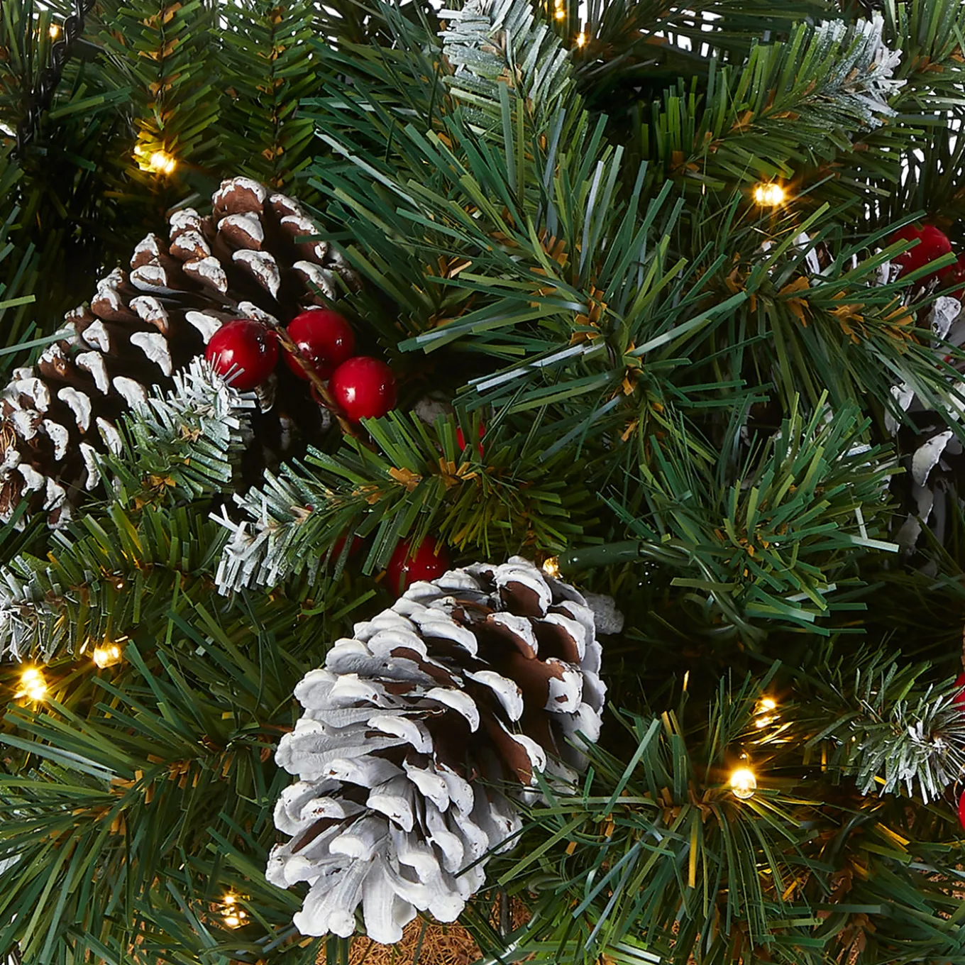 - This Frosted Berry Pre-Lit Artificial Christmas Hanging Basket is 20 inches wide and designed to look and feel lifelike, featuring 84 individually crafted branch tips to create full bodied branches.