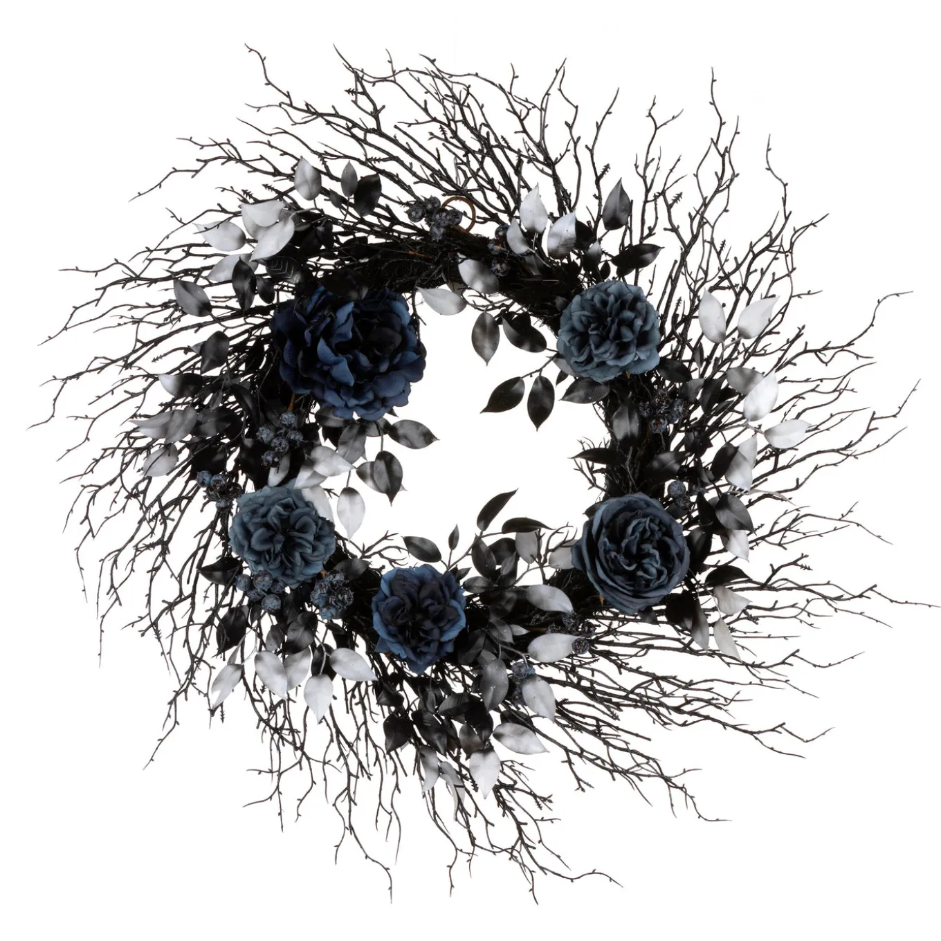 It’s spooky season with this Deadwood and Roses wreath. Measuring 24 inches, this wreath is crafted with black twigs and roses. Ideal for Fall or Halloween, hang on any entryway or mantle to impress visitors. For indoor use only.