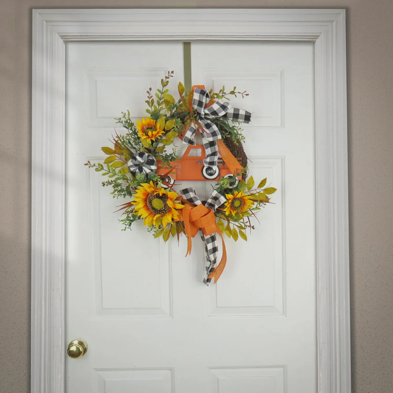 26″ Harvest Decoration- Wreath w/Sunflowers, Twig, Car & Bow- Pack 1