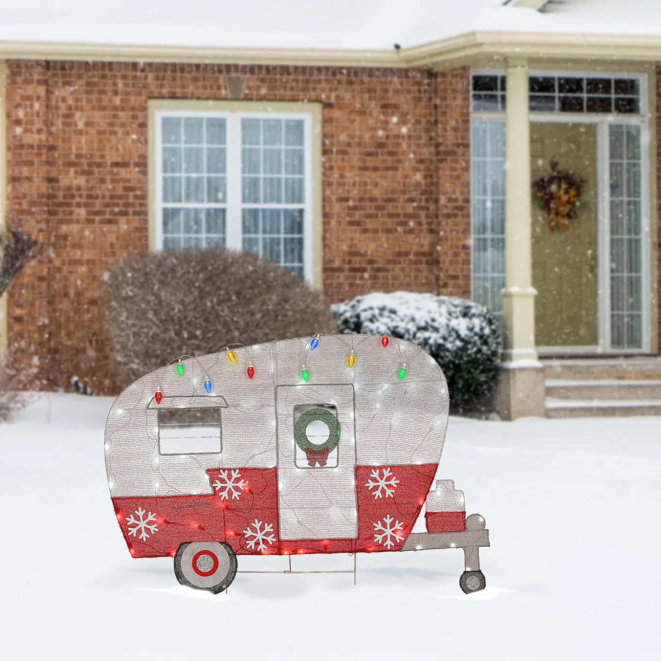 This adorable 32 inch Christmas camper decoration is a fun and festive addition to your holiday décor! Adorned with 10 multicolor LED lights, 50 cool white LED lights, and 20 red LED lights, it creates a vibrant and cheerful display. Perfect for indoor or outdoor use, this charming camper will bring a whimsical touch to your holiday festivities, capturing the joy of the season for all to see!