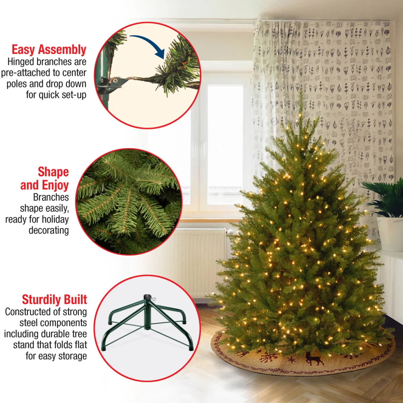 Hundreds of crush-resistant polyethylene tips form full bodied branches, creating a tree with remarkable realism.
