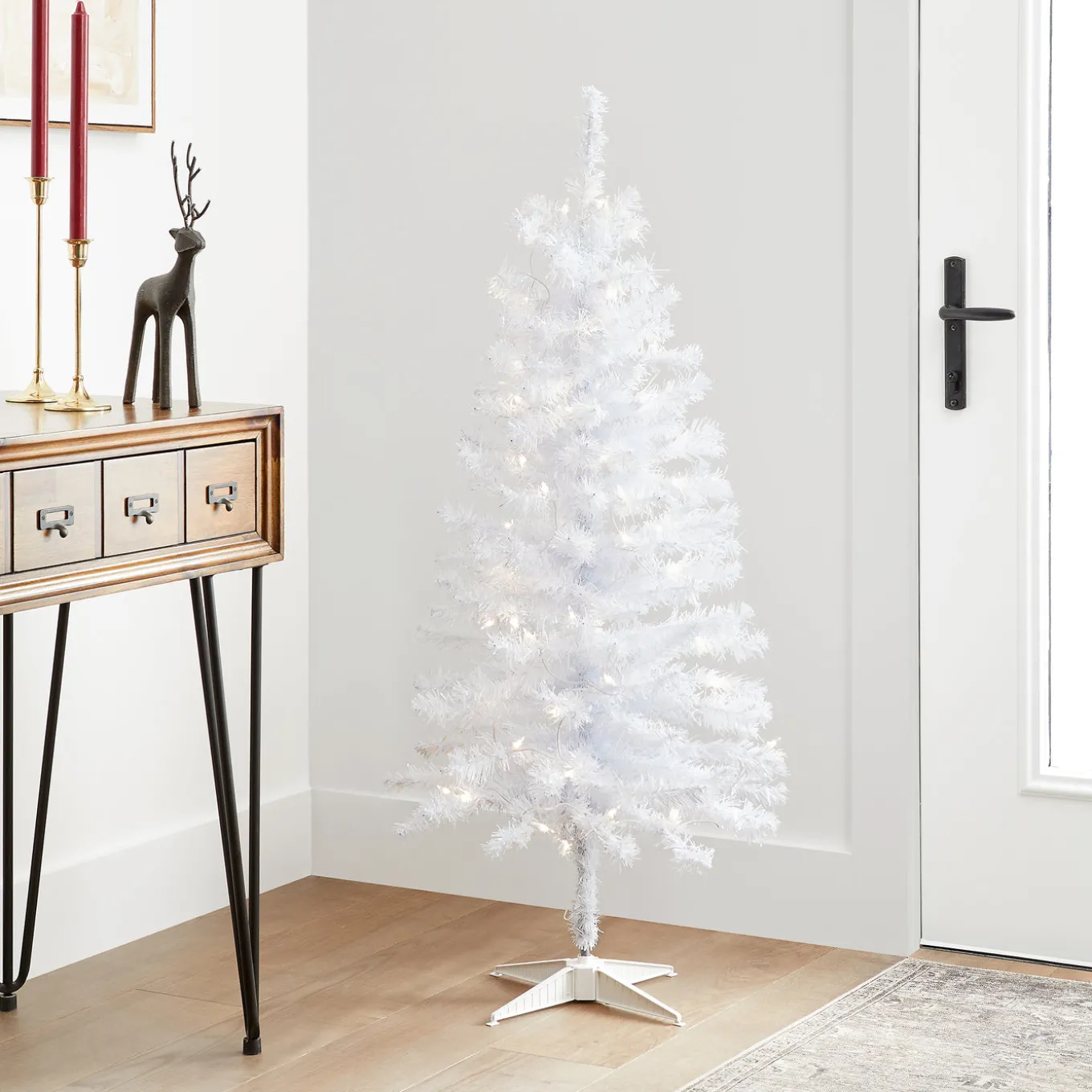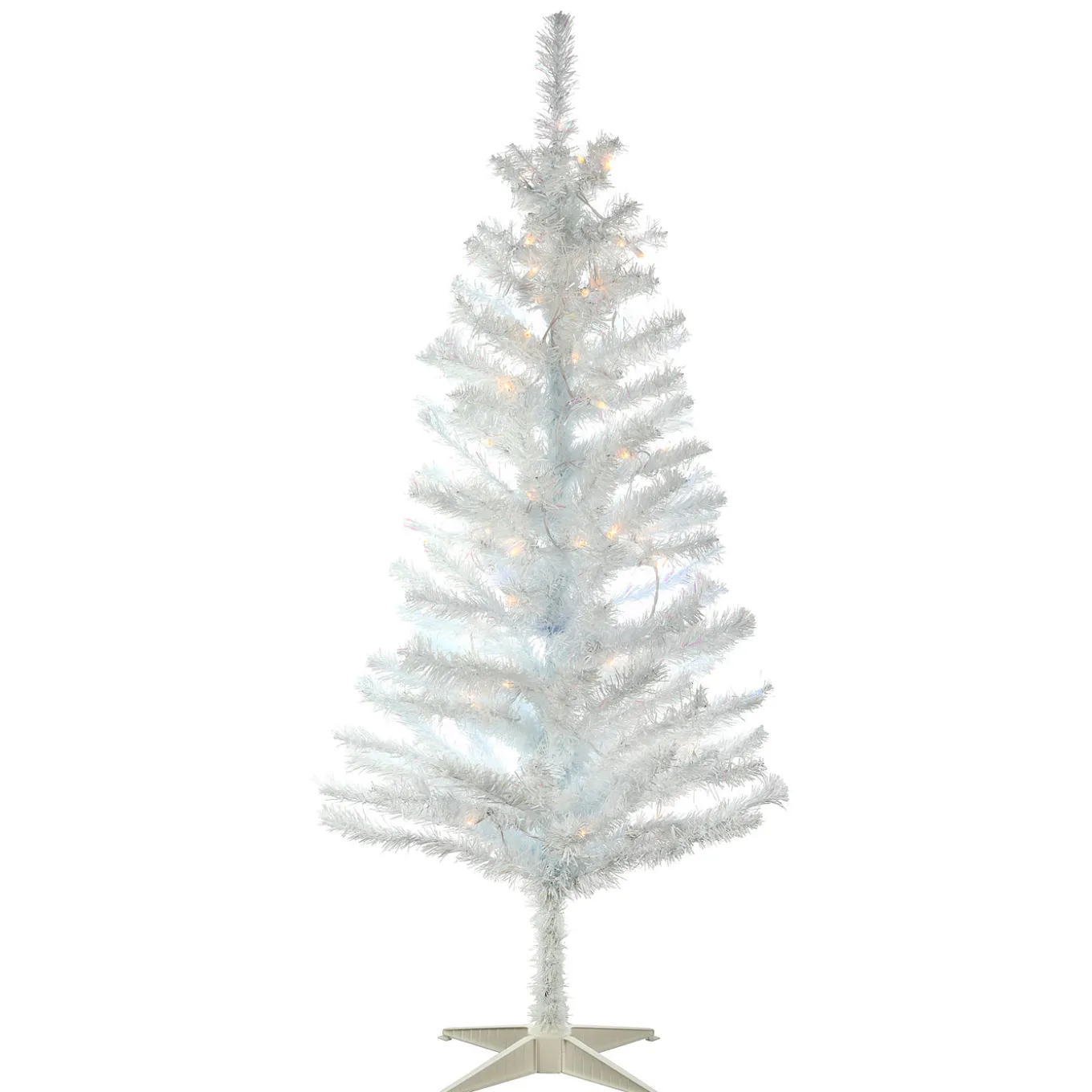 4 ft. Pre-Lit Tinsel Collection White Iridescent Tree with Clear Lights