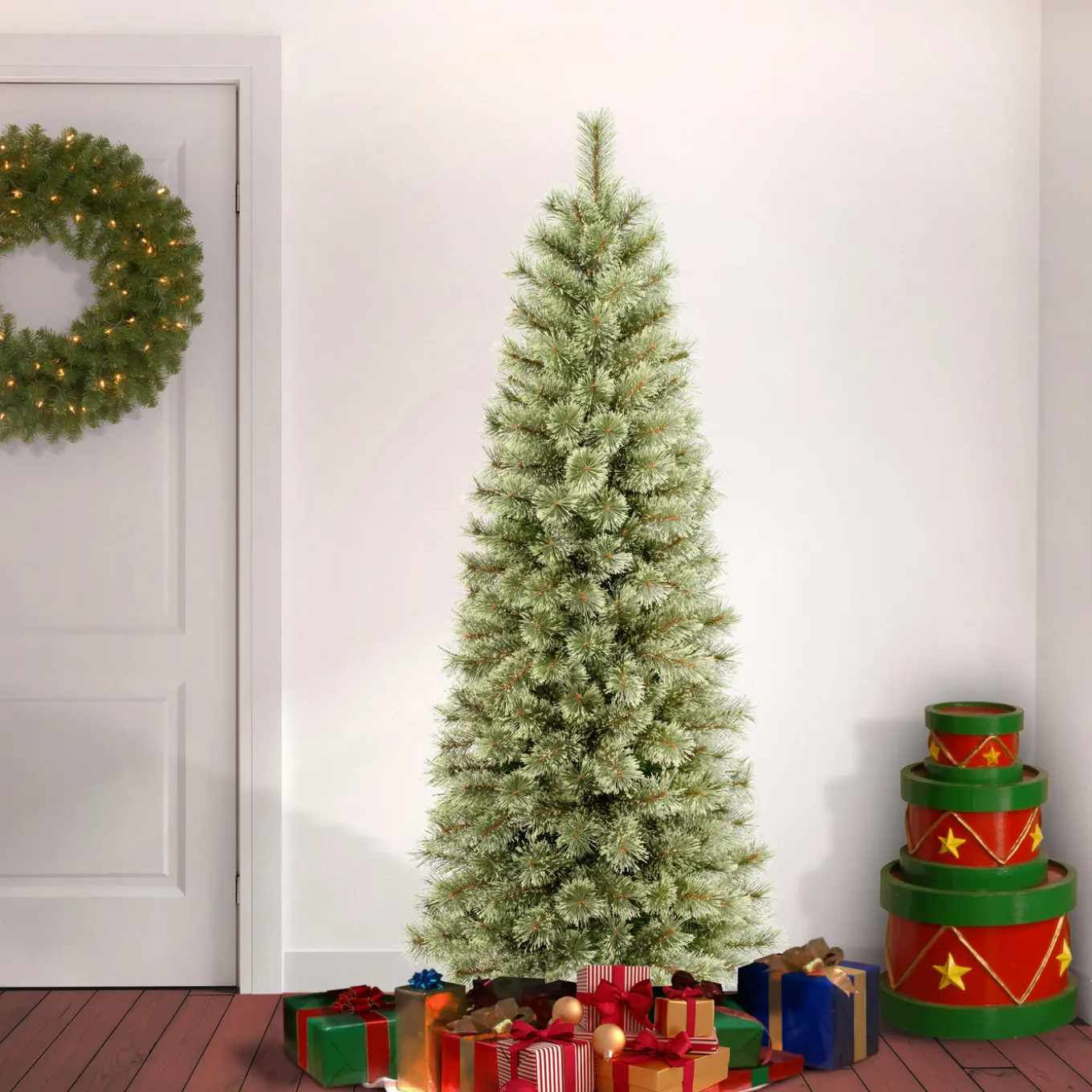 Slim Christmas trees are popular for their slender, space-saving design, making them ideal for smaller spaces or for adding a festive touch without taking up too much room.