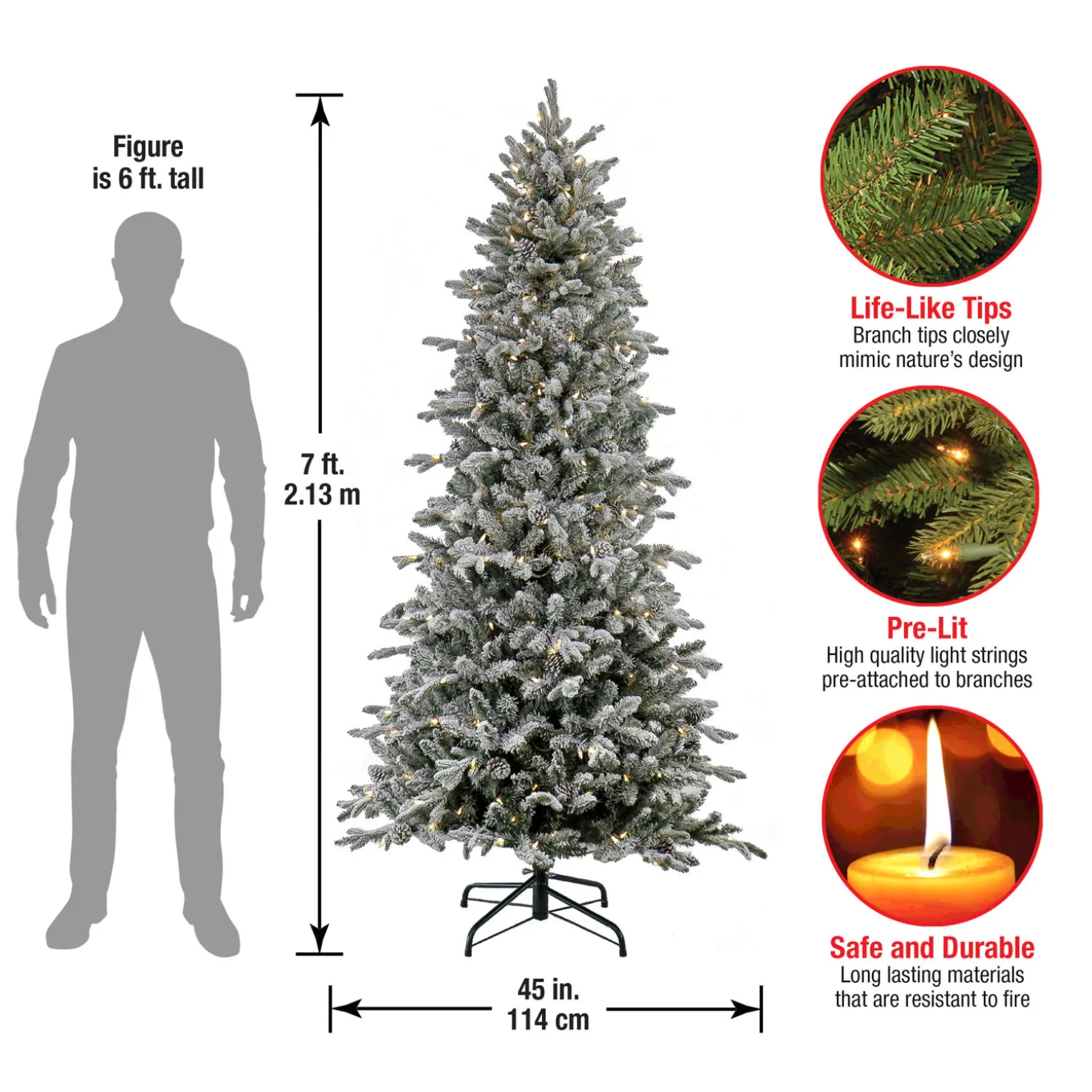 7 ft. Pre-Lit Snowy Calton Pine Tree with LED Lights